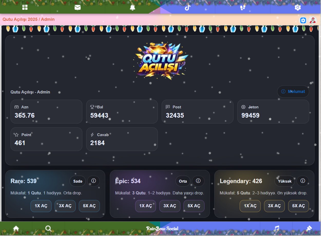 Məsələn RARE Qutusunda AZN Yoxdur EPİC də AZN VAR VİP USER Var ! LEGENDARY Qutuda isə Rütbə var !
